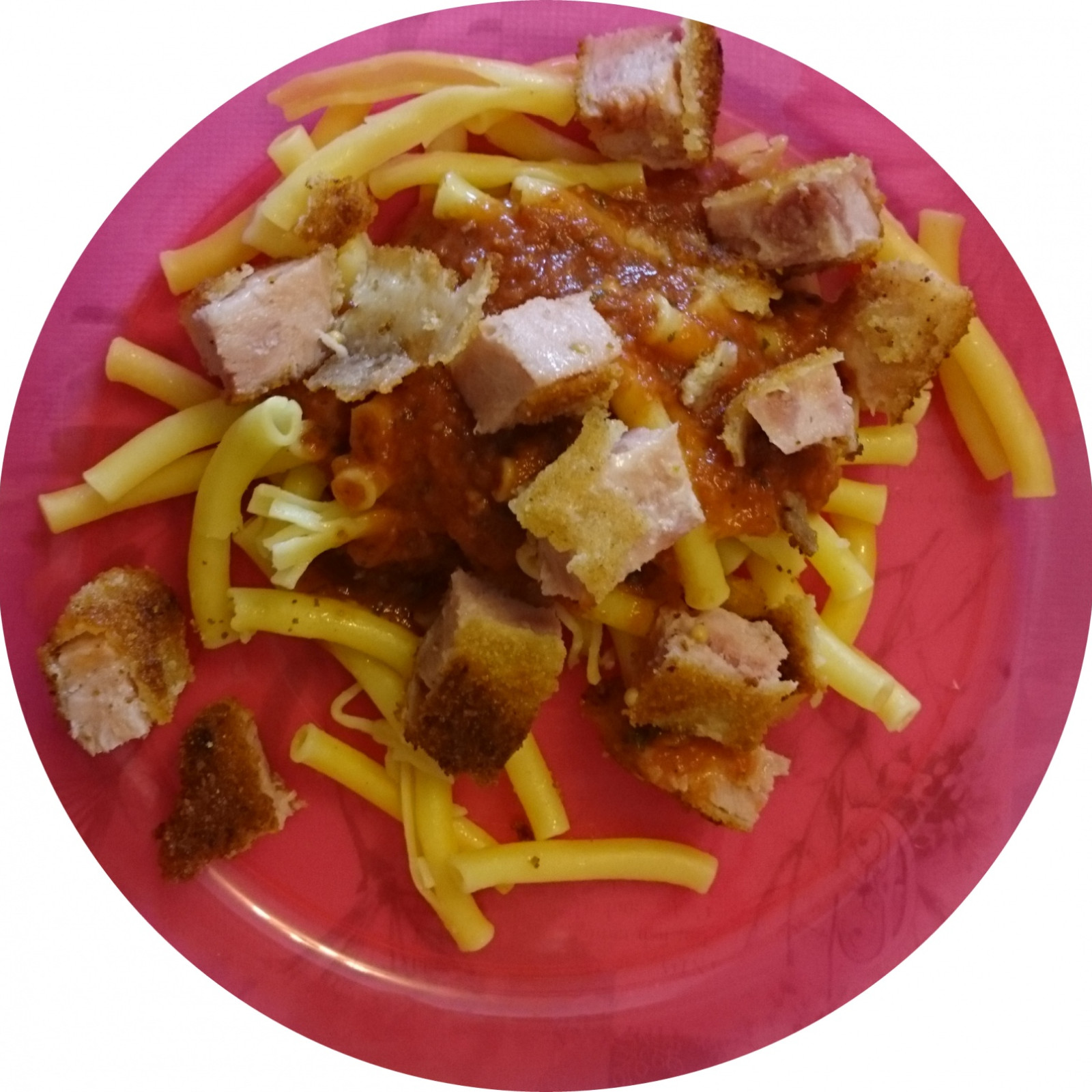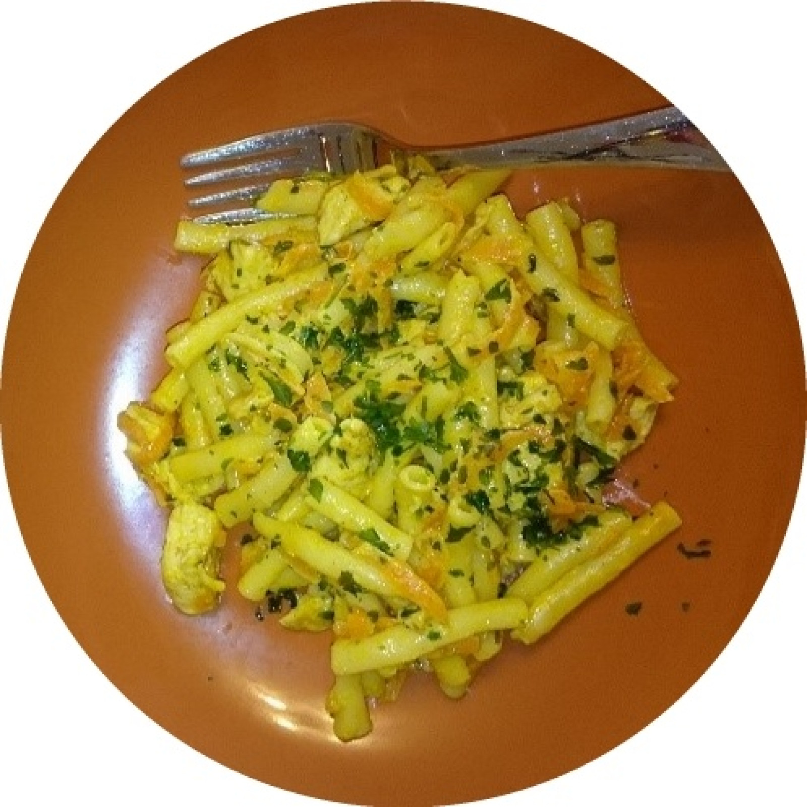 Montag: Hörnchennudeln in fruchtiger Paprikasauce mit Hähnchen